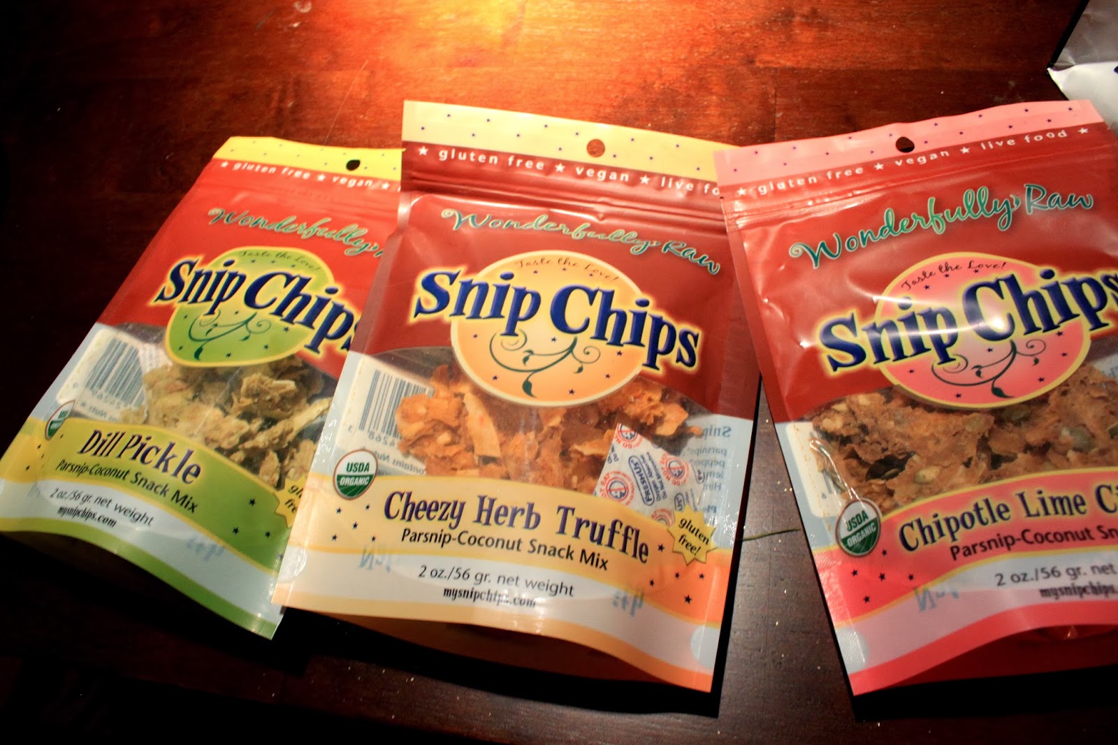 According to the packaging, “Organic Parsnips & Organic Coconut combined with our tasty coating of goodness. Make this Snip-Chips the next big thing in healthy snacking. Parsnips are high in vitamin C,E & K , high in fiber, omega3 and potassium. Let’s not forget the healthy benefits of coconut, which raises metabolism and helps burn fat.”